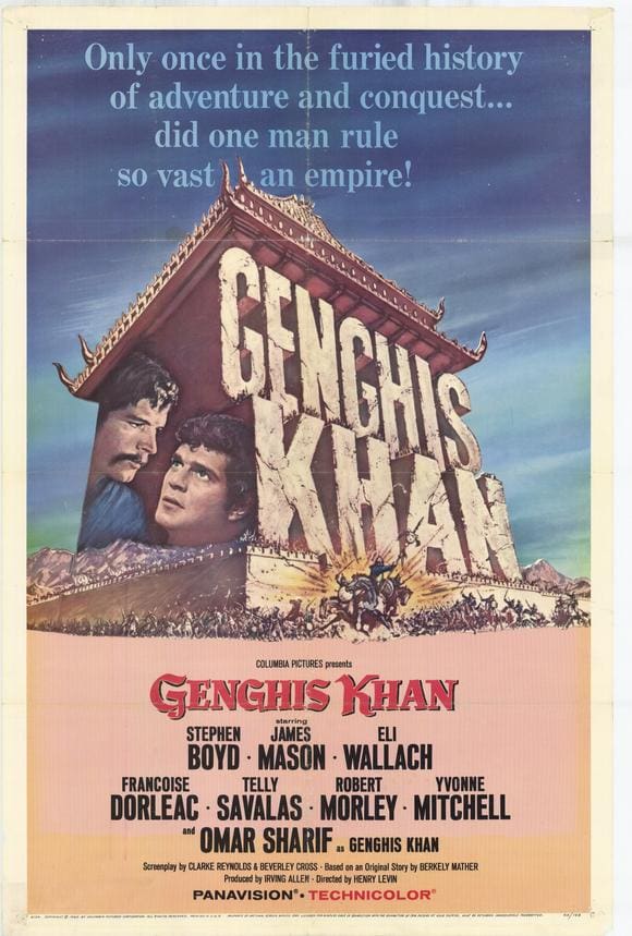 GENGHIS KHAN, after being raised by the evil leader Jamuga, escapes and forms his own tribe in the mountains. He returns to steal away and marry Jamuga’s girl, and then goes to China. It is there that he gains the respect of the leader of the Chinese by fending off the warriors of Jamuga.