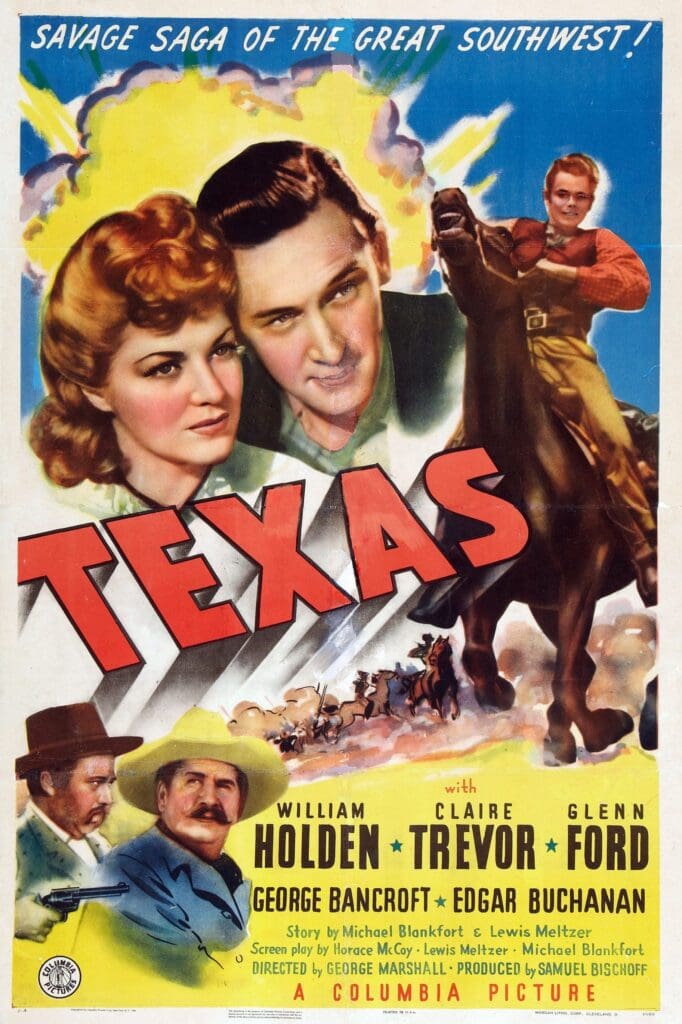 In this rip-roaring blend of action, thrills and humour, WILLIAM HOLDEN and GLENN FORD star as Dan Thomas and Tod Ramsey. They are two saddle bums whose dream of making their fortune in the Lone Star state has gone seriously awry. So when the rough-and-tumble drifters witness a stagecoach hold-up, they decide to rob the robbers and go their separate ways. By the time they meet again, however, the two friends discover that they’re not only in love with the same woman but on opposite sides of the law as well.